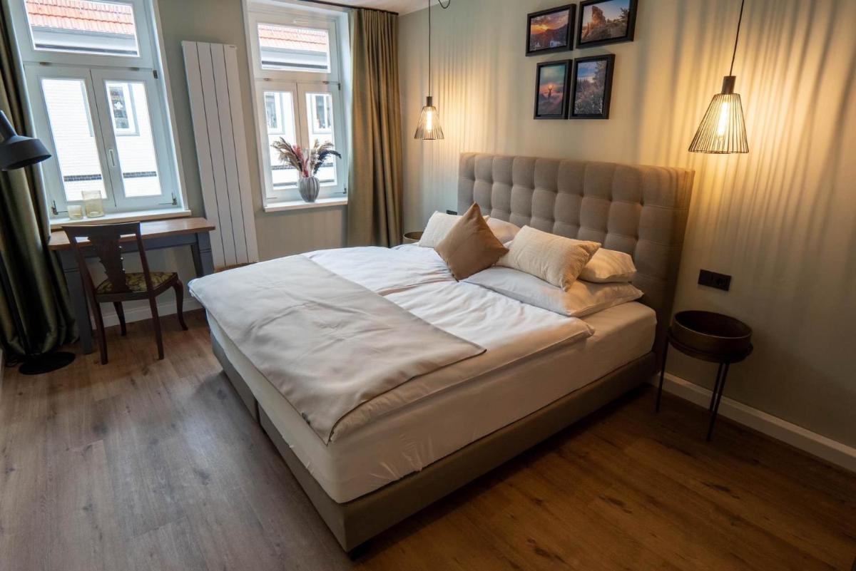 The Ferienwohnung Rathausblick 2 mit Infrarot-Kabine, located in Blankenburg, boasts stunning mountain views and is situated approximately 2.8 miles from Monastery Michaelstein and 8 miles from Friedrichsbrunn-Hexentanzplatz. Offering a range of amenities, this cozy apartment provides free private parking and Wi-Fi access, making it perfect for travelers seeking a peaceful retreat amidst nature's beauty. Situated just 11 miles from Wernigerode Culture & Congress Center, guests can explore various cultural attractions within easy reach. For those interested in history, nearby sites such as Harzer Bergtheater offer fascinating insights into local heritage. The apartment is equipped with modern conveniences, including a satellite flat-screen TV, a well-stocked kitchen featuring a dishwasher, oven, and toaster, ensuring comfort and convenience during stay. With its private bathroom offering a hairdryer, this accommodation caters to both leisure and work needs. The property is also known for being allergy-friendly, providing a comfortable environment for guests with sensitivities. Additionally, the location makes it convenient for exploring nearby destinations, including the train station, which is just 10 miles away. Nearest airports include Leipzig/Halle Airport, located approximately 75 miles from the property, making travel arrangements straightforward for visitors. The area around the apartment includes several recreational options, ranging from hiking trails at Wildpark Christianental (covering over 10.7 miles) to traditional German villages like Dorfgemeinschaftshaus and Heimatstube. Whether you're looking to relax by the mountains or immerse yourself in local culture, Ferienwohnung Rathausblick 2 mit Infrarot-Kabine promises a memorable holiday experience.