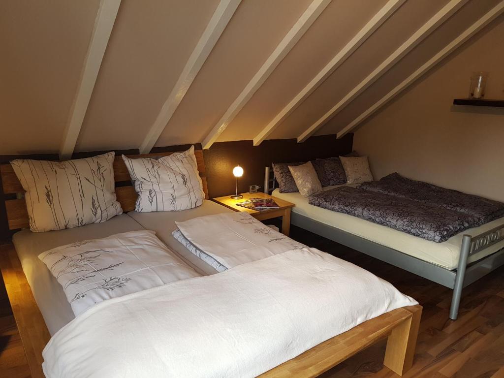 The house has a large room with bedroom, living area, TV, a kitchen area and a private toilet with bathroom with brush. The apartment is accessible for people with allergies and is not smoke-free.