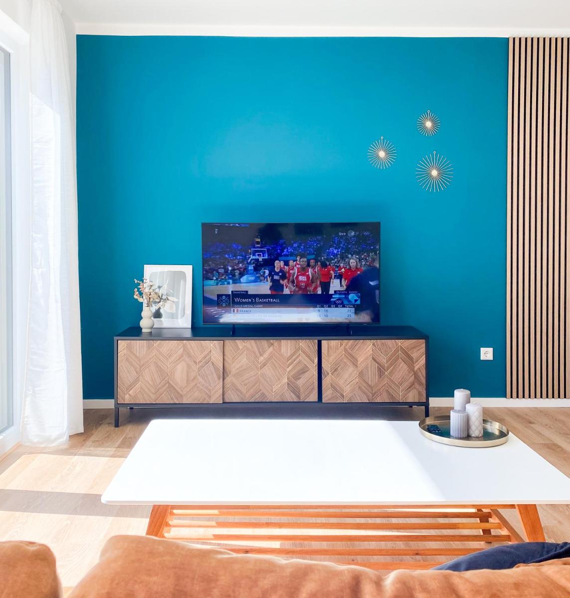 The apartment is small but modern.