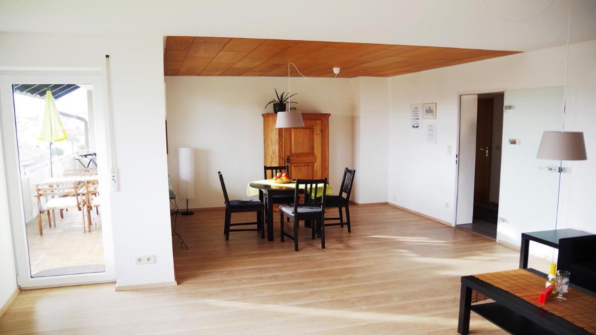 The spacious apartment at FeWo Weitblick am Bodensee in Bermatingen boasts two bedrooms, a living room, and a fully equipped kitchen featuring barbecue facilities and outdoor furniture. Enjoy breathtaking mountain and garden views from the balcony. Free WiFi, a washing machine, and a work desk are included, along with a private bathroom. The property is conveniently located near various attractions and activities within a short drive.