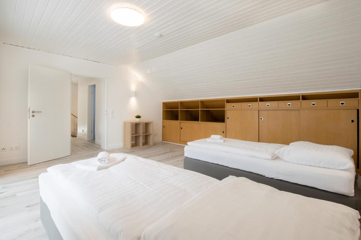 Situated just 10 miles from the nearby Saint Gereon's Basilica and only 10 miles from Cologne Central Station, this location makes it easy to explore the area and reach other destinations conveniently. The apartment boasts a spacious layout, encompassing 8 bedrooms, a comfortable living room, flat-screen television, and an equipped kitchen. Guests can enjoy a spa-like experience with the inclusion of three bathrooms, two of which feature a bathtub and shower.