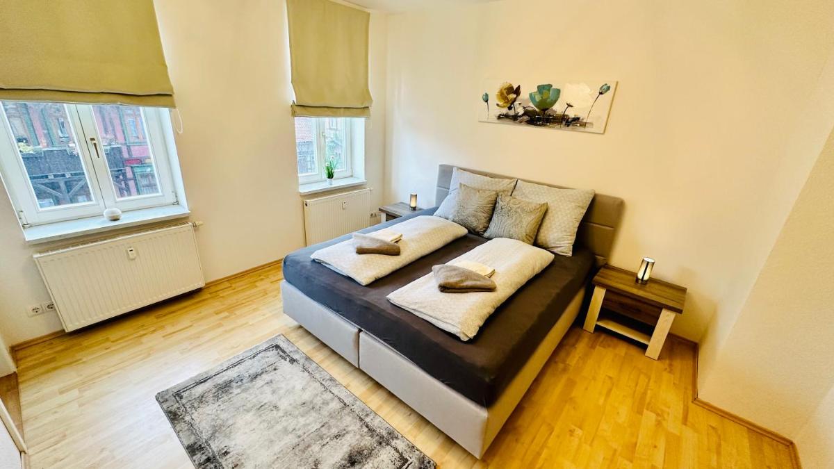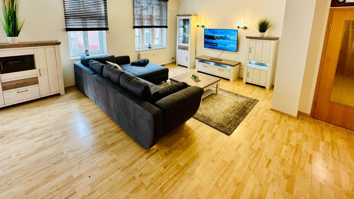 FeWo gemütliche Residenz mit Holzofen-Sauna von Harztraveler, nestled between the tranquil beauty of the Harz Mountains and the bustling heart of Wernigerode, offers a cozy retreat with its own private garden and warm wooden sauna. Ideal for those seeking a relaxing getaway amidst nature's splendor, the property is conveniently located near the Cultural Center and Train Station, making it easy to explore nearby attractions such as Old Town Quedlinburg and the historic town hall within just a few minutes' walk. Enjoy a range of amenities including free Wi-Fi, a fully-equipped kitchen, and comfortable accommodation featuring two bedrooms, a spacious living room, and a flat-screen TV. With its convenient location and numerous outdoor activities, FeWo gemütliche Residenz provides an unforgettable stay in the scenic surroundings of the Harz region.