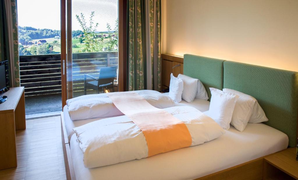 The Genusshotel Riegersburg, nestled amidst the picturesque hilly landscapes of eastern Styria, offers a perfect blend of luxury and tranquility. This charming establishment boasts an array of exceptional wellness amenities, including an inviting outdoor pool, a breathtaking terrace offering splendid vistas of the Riegersburg Castle and its surroundings, as well as a fine selection of regional cuisine. Guests staying at this esteemed property can relish a morning rich breakfast on the terrace while enjoying the serene ambiance, followed by a leisurely evening in the cozy lounge adorned with an open fireplace and equipped with comfortable seating arrangements. The hotel's non-smoking rooms provide a peaceful retreat, making it ideal for couples seeking a memorable getaway. Additionally, the Genusshotel Riegersburg features free Wi-Fi access throughout the premises, ensuring convenience during your stay. Conveniently located just 7.8 miles from Museums in Gsellmanns Weltmaschine, 7.5 miles away from Tabor Feldbach, and 7.6 miles from Gemeindemuseum, this gem of a destination promises a delightful experience for all visitors.