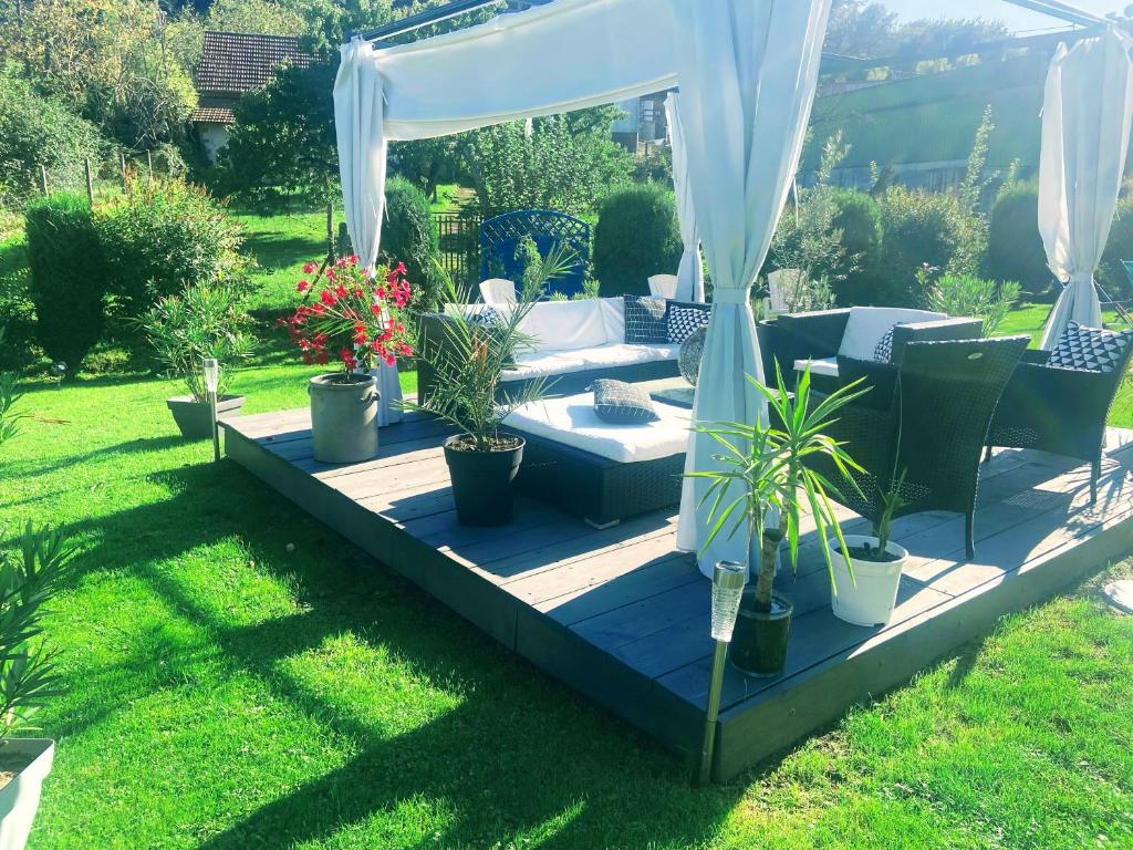 The cottage has a spacious garden and a pleasant terrace