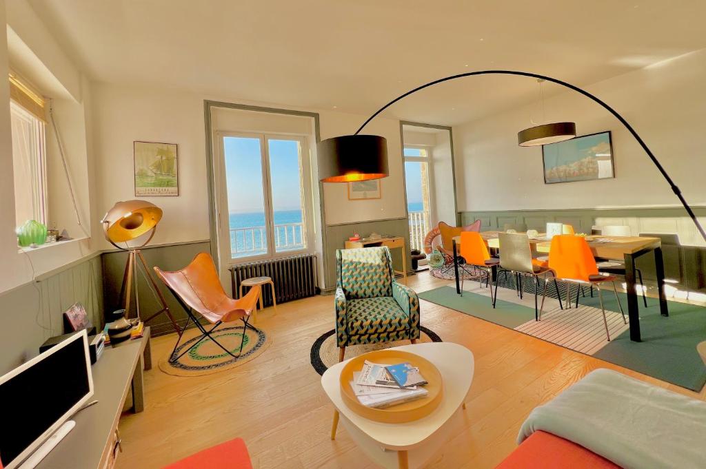 Glaz Ocean, situated just a few steps from Plage des Sables Blancs and within a convenient 4-minute stroll of Plage Saint Jean, presents its accommodations in Douarnenez with barbecue facilities. Nestled along the beachfront, this charming property offers access to a patio and complimentary Wi-Fi.