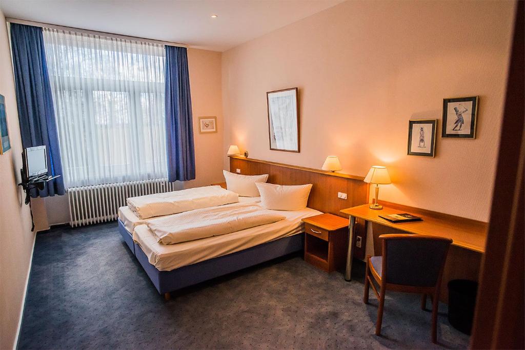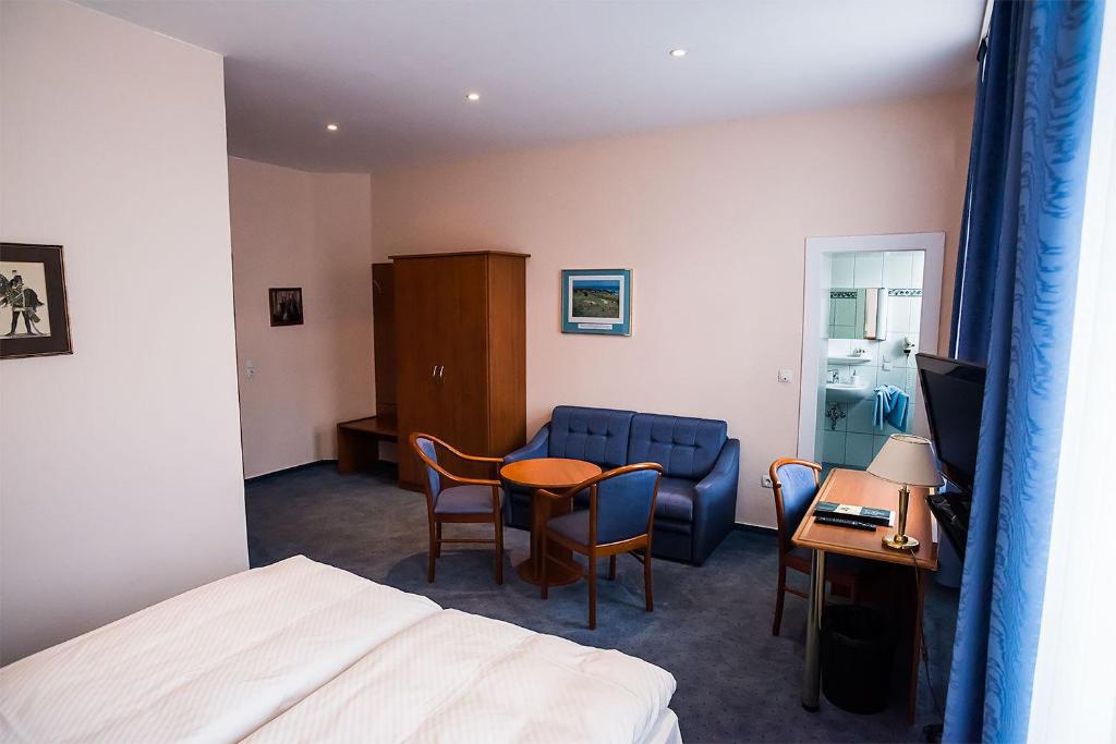 The hotel's rooms provide comfortable amenities, featuring a desk, flat-screen TVs, private bathrooms equipped with bed linens and towels, and a closet. A complimentary à la carte breakfast is available upon request, offering delicious choices from Greek cuisine to traditional German fare.