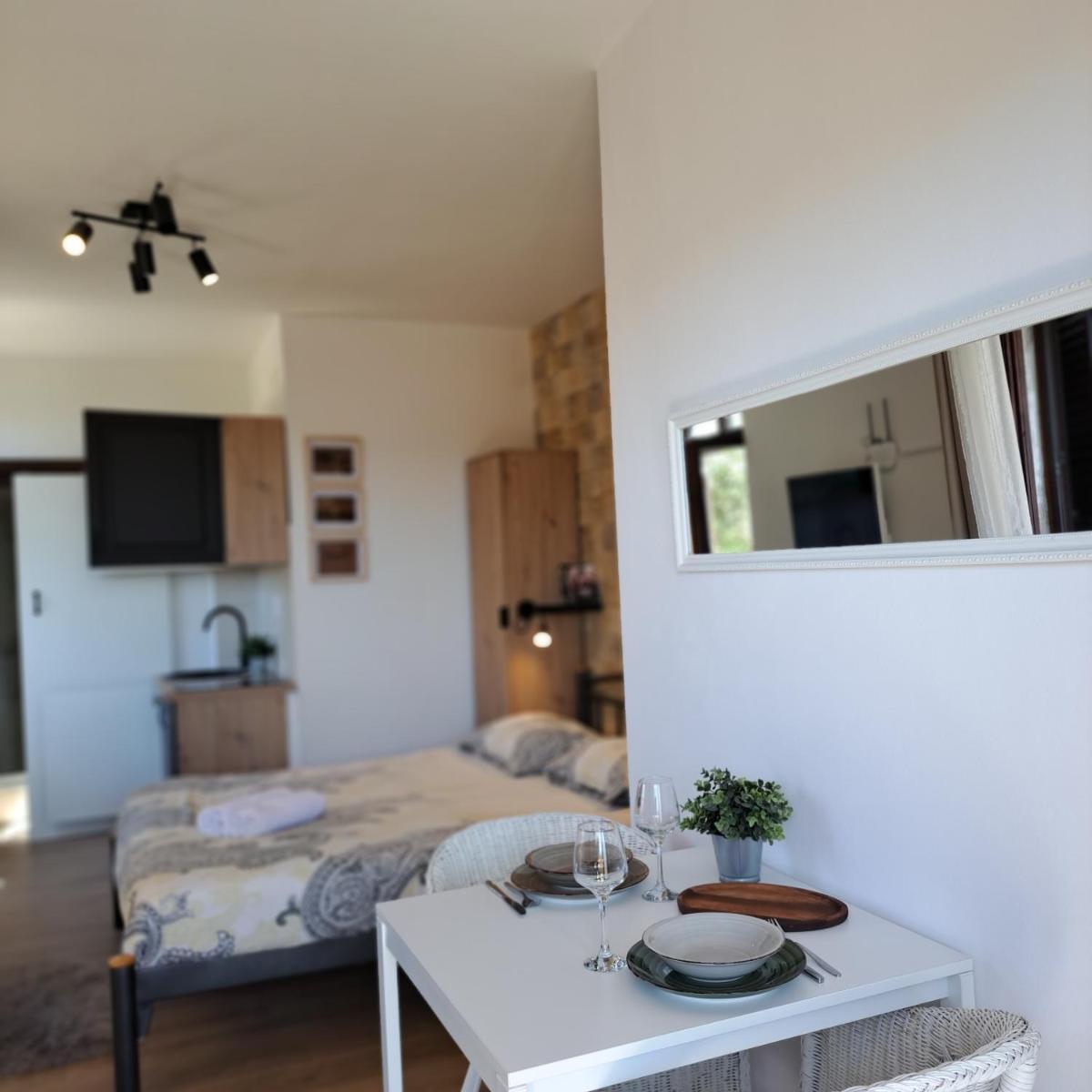 The Studio apartment with sea view located in Sali, just 300 meters from Sali Beach, offers an ideal getaway featuring stunning sea views. This accommodation features a spacious terrace where guests can enjoy outdoor seating. Guests will find everything they need, including free Wi-Fi, a fully-equipped kitchen, a comfortable seating area, a dining space, and a flat-screen cable TV. Additional amenities include towels and bed linens, ensuring comfort during their stay. The apartment boasts a cozy fireplace, creating a warm ambiance.