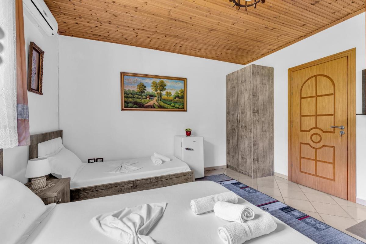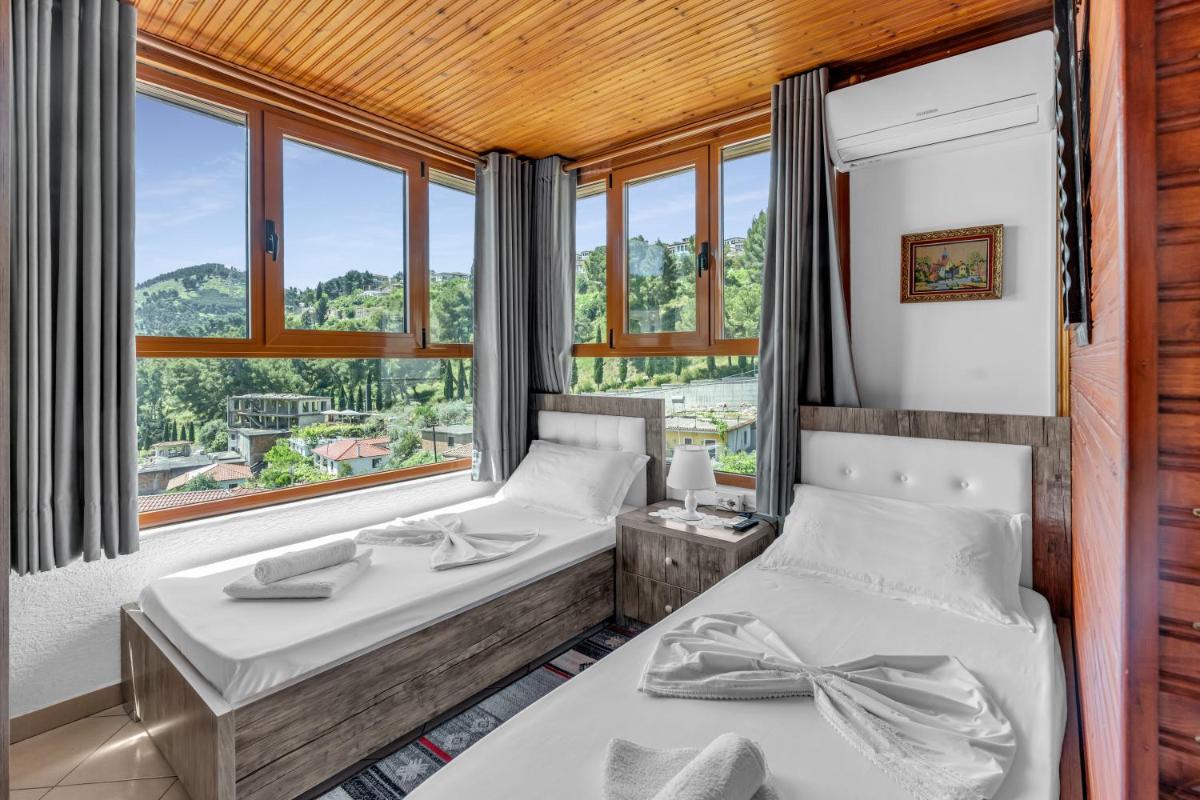 Guest House Emiljano in Berat offers comfortable accommodations featuring family rooms with private bathrooms, air conditioning, and scenic views. Enjoy a sun terrace, garden, and free WiFi. Experience exceptional facilities including an outdoor fireplace, games room, and outdoor seating area. Private check-in/check-out, 24-hour front desk, housekeeping, laundry, and luggage storage are available. Express services and full-day security enhance comfort. Located near Musseums such as Muzeu Kombëtar Ikonografik Onufri and Muzeu Kombëtar Etnografik Berat, this property is highly rated for its friendly host and excellent amenities.