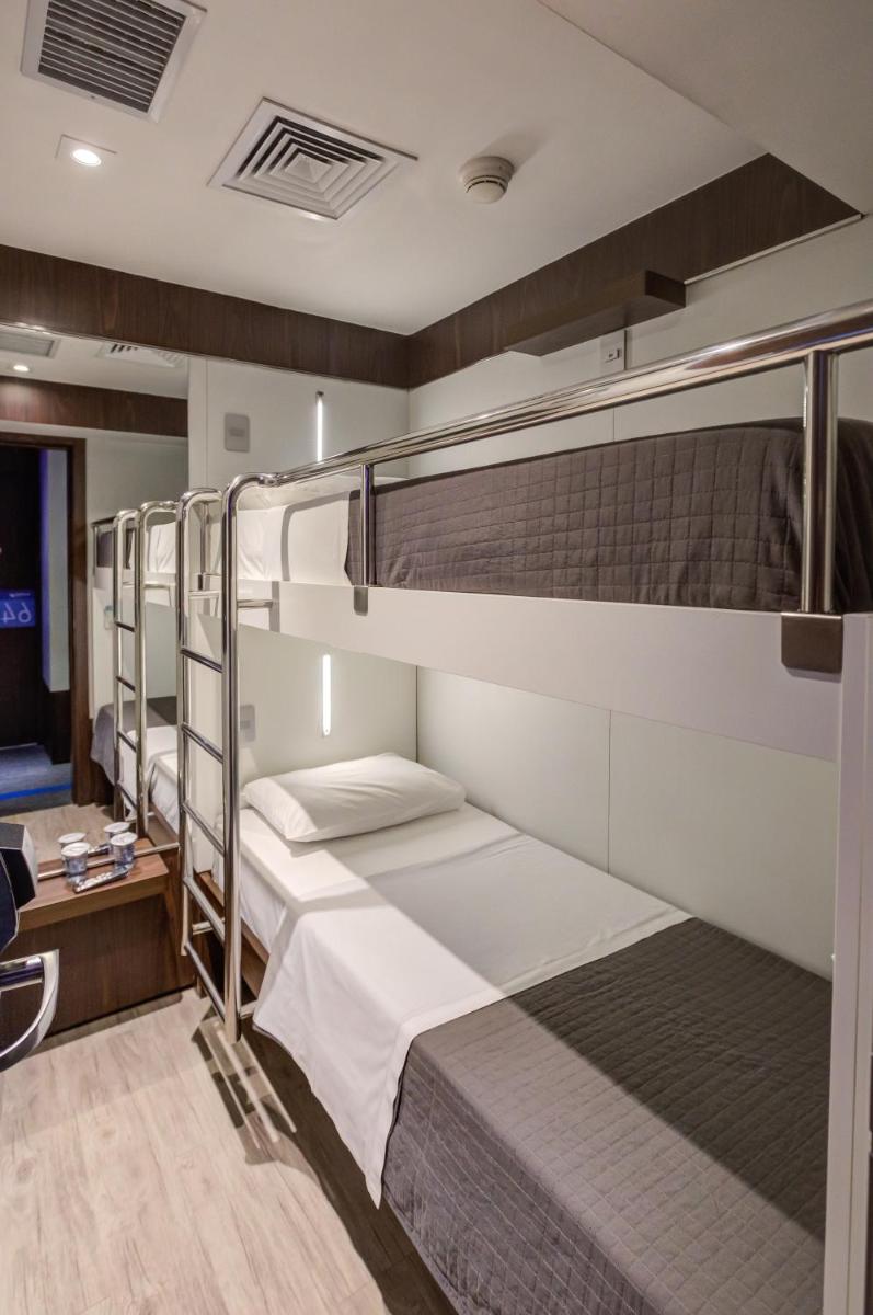 FAST SLEEP Guarulhos by Slaviero Hotéis is conveniently located inside Guarulhos International Airport, in Terminal 2, Wing D National Arrival, East side. The hotel offers practical rooms with approximately 4 m² in size and fitted with bunk beds.