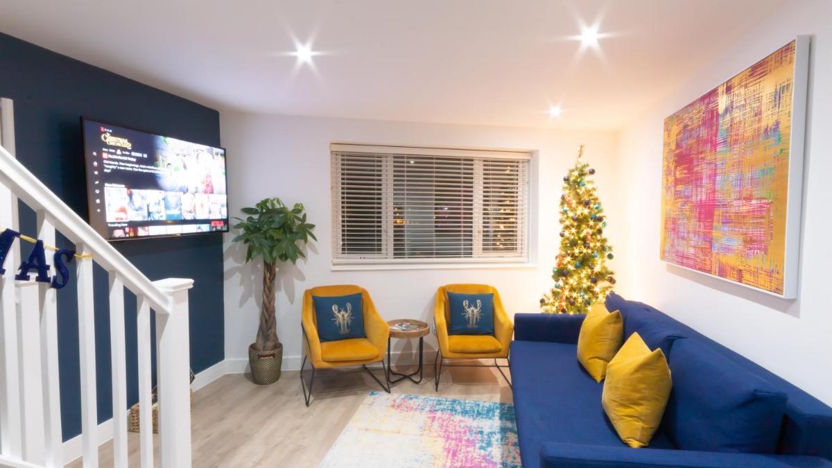Harborside Roof Terrace & Sea Views By Adliv, situated in Ramsgate's historic setting, offers a private beach area with breathtaking sea views. This charming property boasts a spacious living room, three bedrooms, and two bathrooms. Enjoy free WiFi, a sun terrace, and an outdoor seating area while relishing the resort-like atmosphere. Complementing its prime location near Ramsgate Main Sands Beach and just a 15-minute walk to Pegwell Bay Beach, guests can explore nearby attractions such as Granville Theater, Sandwich Railway Station, and various museums. The property measures approximately 76 square meters and includes a balcony, a private bathroom, and a cozy kitchen.