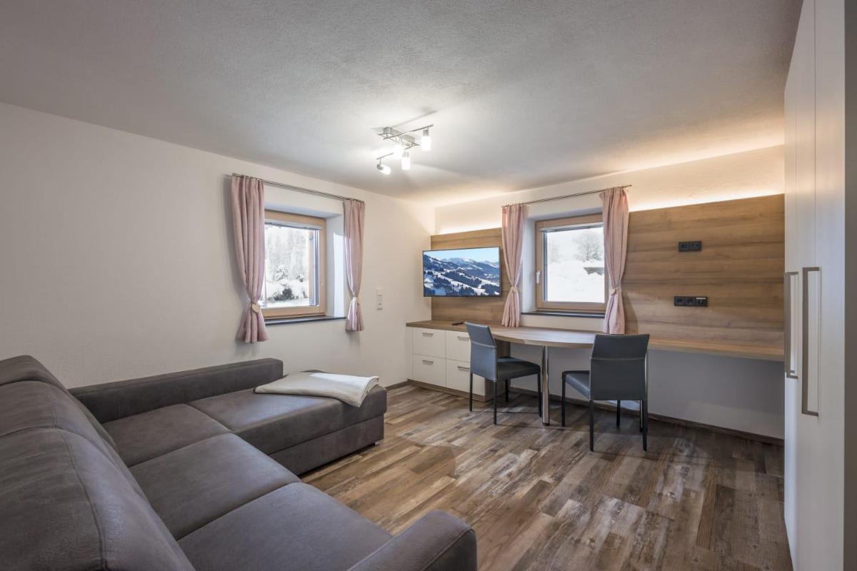 Haus Auni Metzgermeister offers guests a charming apartment located in Westendorf. This spacious residence provides numerous amenities including free Wi-Fi, ample free parking, and complimentary bicycle storage. Guests enjoy outdoor seating overlooking scenic mountains within the apartment complex.