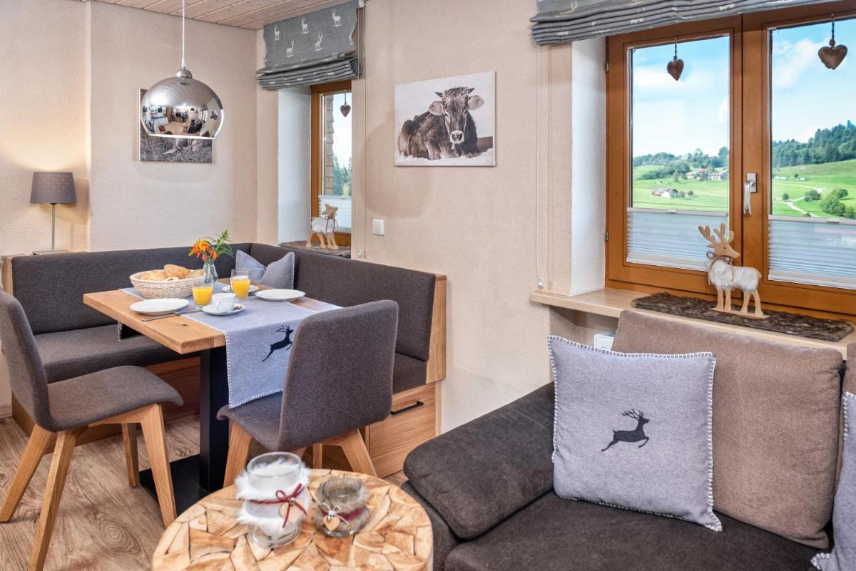 Haus Gorbach, located in Oberstaufen, boasts an ideal location just 40 miles from Lindau Train Station and 30 miles from Alpenwildpark Pfänder. This charming four-star apartment offers a variety of amenities, including free Wi-Fi, BBQ facilities, and a fully-equipped kitchen. Guests can enjoy stunning mountain views from the balcony, while the spacious living area provides ample space for relaxation. The property's proximity to various recreational activities such as table tennis and mini-golf makes it an excellent choice for those seeking fun and adventure. For more adventurous souls, Haus Gorbach is conveniently positioned near several ski resorts and cycling trails. With its convenient access to major transportation hubs like Bregenz Railway Station (35 miles away), this accommodation is perfect for travelers looking to explore the surrounding areas. Whether you're planning a family vacation or simply seeking a peaceful retreat, Haus Gorbach promises a memorable stay within easy reach of numerous attractions.