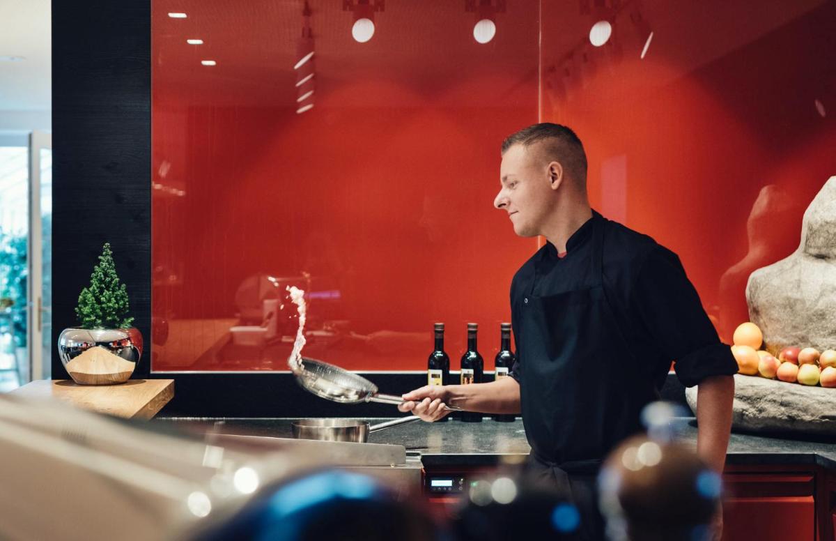 Indulge in authentic Austrian cuisine, infused with Mediterranean flavors, served by the restaurant staff who bring freshness and healthfulness to every dish. For those preferring something different, Hotel Hinterwies has introduced a new culinary concept starting from December 2017, featuring innovative, fresh, and nutritious preparations made using state-of-the-art equipment in their newly equipped kitchen.