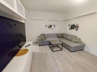 The apartment boasts a spacious 1-bedroom layout, complete with a fully equipped kitchen featuring an oven, microwave, washing machine, and flat-screen TV. Guests will also find complimentary towels and bed linens, ensuring a restful sleep every night.