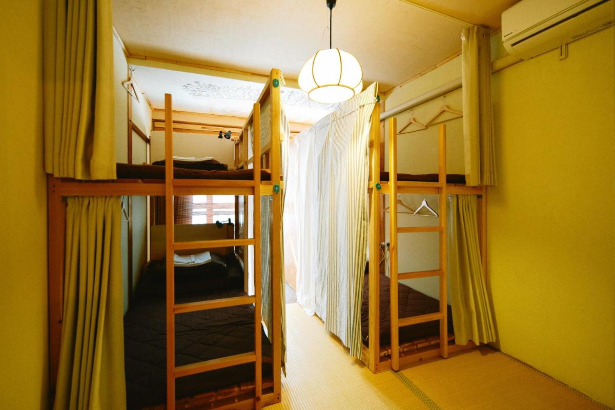 At the guest house, units are equipped with a tatami. Featuring a shared bathroom with a hair dryer, units at the guest house also have free WiFi, while certain rooms also offer a balcony. All units at the guest house feature air conditioning and a desk.