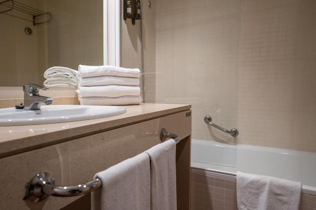 Hotel Alcossebre, located approximately 1.9 miles northwest of the Sierra de Irta Nature Reserve and just 984 feet away from Alcossebre's bustling Carregador Beach, boasts an inviting atmosphere where guests find their accommodations both comfortable and meticulously maintained. Each of its 60 air-conditioned rooms features a tasteful blend of modern decor and classic elegance, complementing the serene surroundings. Tiled flooring adds a touch of sophistication, while simple yet functional furnishings create a warm and welcoming ambiance within each suite. Guests relish the convenience of having access to a private bathroom equipped with a hairdryer, ensuring every guest feels pampered throughout their stay.