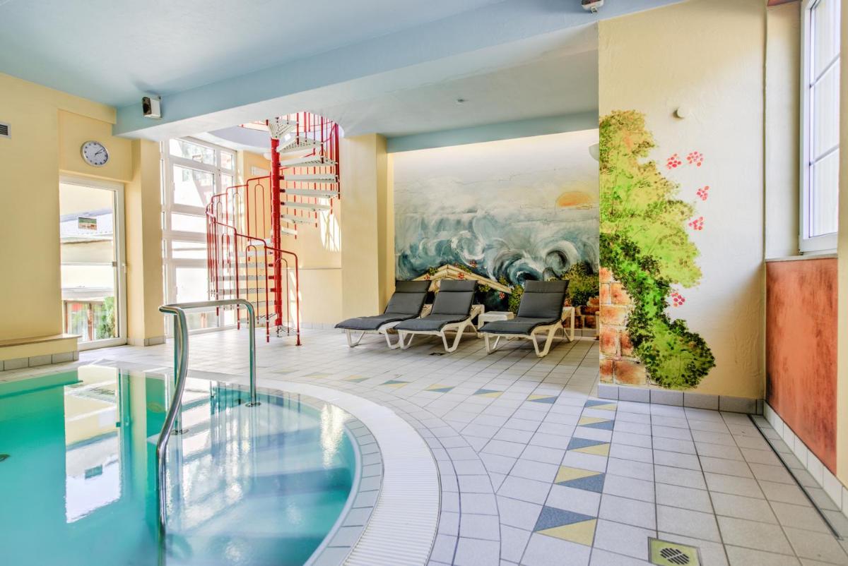 Hotel du Commerce - Restaurant La Table de Clervaux, situated at the foot of Castle Clervaux along the Clerve River, provides modern accommodations with free Wi-Fi access. Featuring amenities such as a wellness center offering an indoor swimming pool, guests can unwind and rejuvenate. Enjoy international cuisine at the newly renovated "La Table de Clervaux" restaurant, which boasts an extensive wine cellar. The wellness center features a range of health and beauty treatments, including hot stone massages, saunas, and Turkish baths. Just a short distance from various attractions, including the Museum The Family of Man and the Clervaux train station, this hotel ensures convenience for its guests.