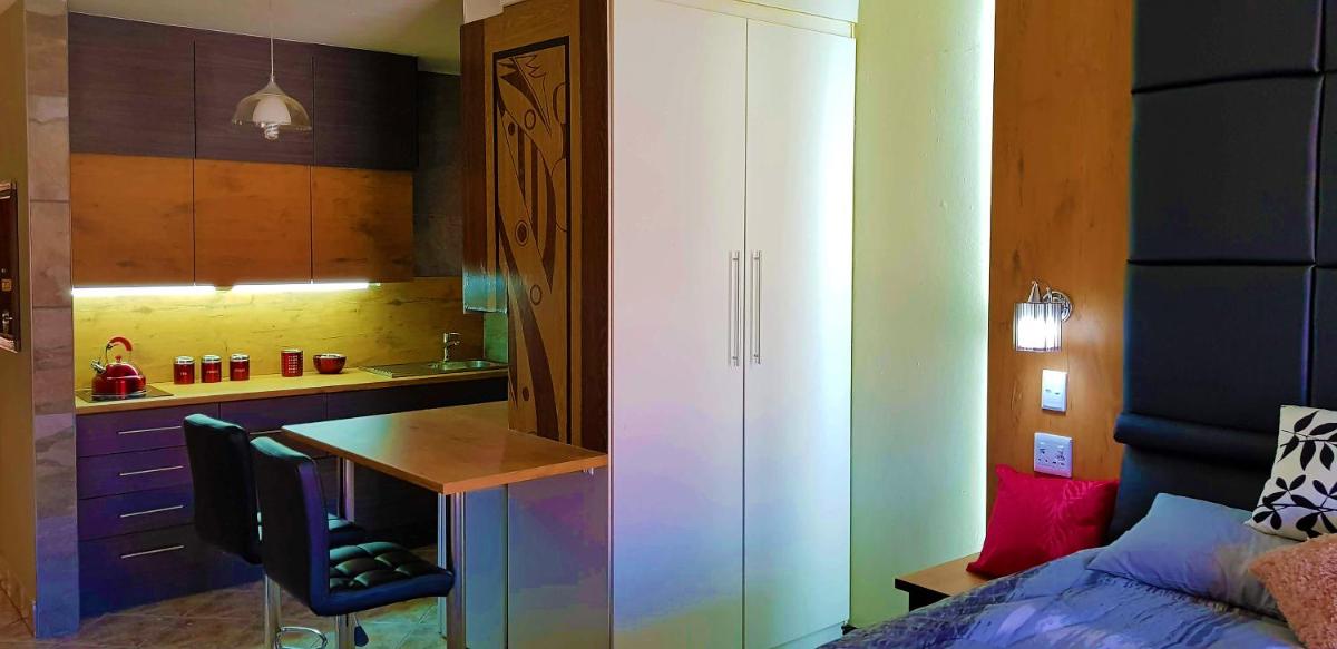 Hyswan Self-Catering Guesthouse, located in Krugersdorp, offers a cozy accommodation just 8.9 miles from Roodepoort Country Club and 15 miles from the Cradle of Humankind. Guests appreciate how accurately the description and photos match their expectations. The property features free private parking, complimentary room service, and unrestricted access to high-speed Wi-Fi throughout the stay. Each suite includes a spacious bedroom, a modern living area equipped with a full kitchen featuring an oven and kettle, as well as a luxurious bathroom with a bathtub and hairdryer. An inviting entrance allows guests to unwind by enjoying locally sourced fruits and chocolates or freshly baked cookies. Bedding, towels, and daily room service are also included in the package. Additionally, there's a convenient on-site snack bar available for guests' convenience. Nearby attractions such as Parkview Golf Club and Eagle Canyon Country Club are within driving distance, making Hyswan Self-Catering Guesthouse an ideal choice for those seeking a comfortable stay near Johannesburg.