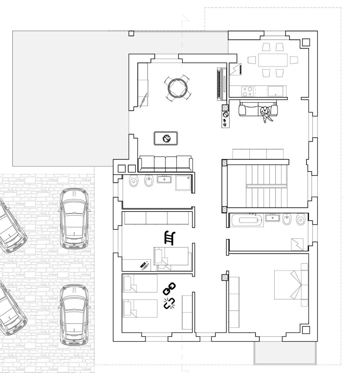 The flat provides a cozy and spacious environment.