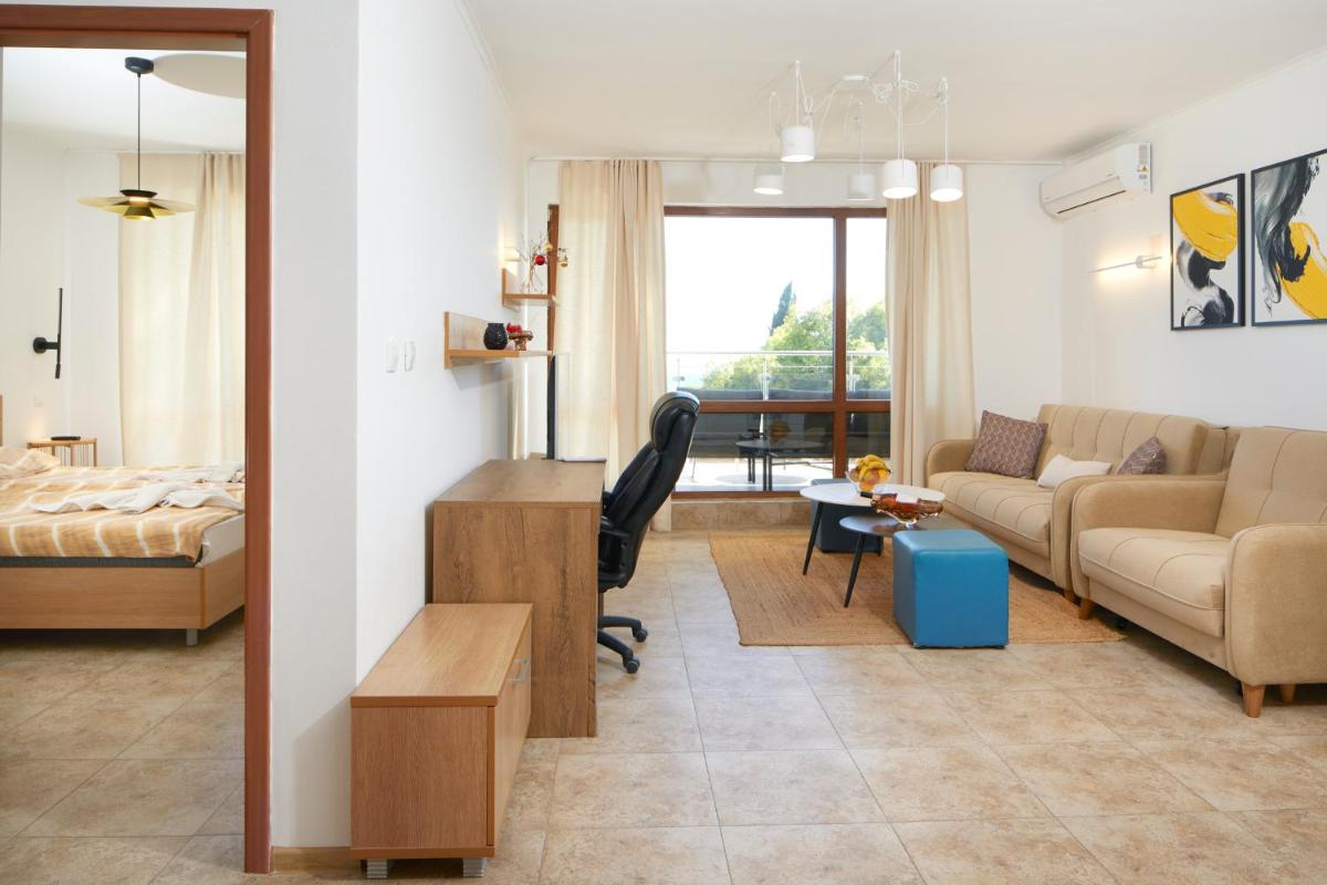 Infinity Apartment Nessebar, located near South Beach Nessebar and Sunny Beach, boasts an authentic stay experience featuring a garden, terrace access, and free WiFi. Situated within walking distance to museums such as the Archaeological Museum and the Museum of St. Nicholas of Nesebar, guests will enjoy easy access to nearby attractions. With its spacious one-bedroom accommodation, equipped with a flat-screen TV and private bathroom, the apartment provides a comfortable sanctuary. Enjoy cooking in peace thanks to the fully-equipped kitchen, making your stay both enjoyable and convenient. Distance-wise, guests are just 19 minutes' walk from Nesebar's old town beach, and less than four miles from Action Aqua Park. For those traveling by air, Burgas Airport is approximately 17 miles away.