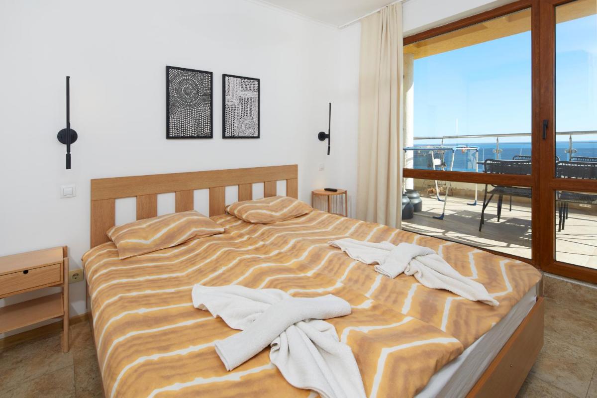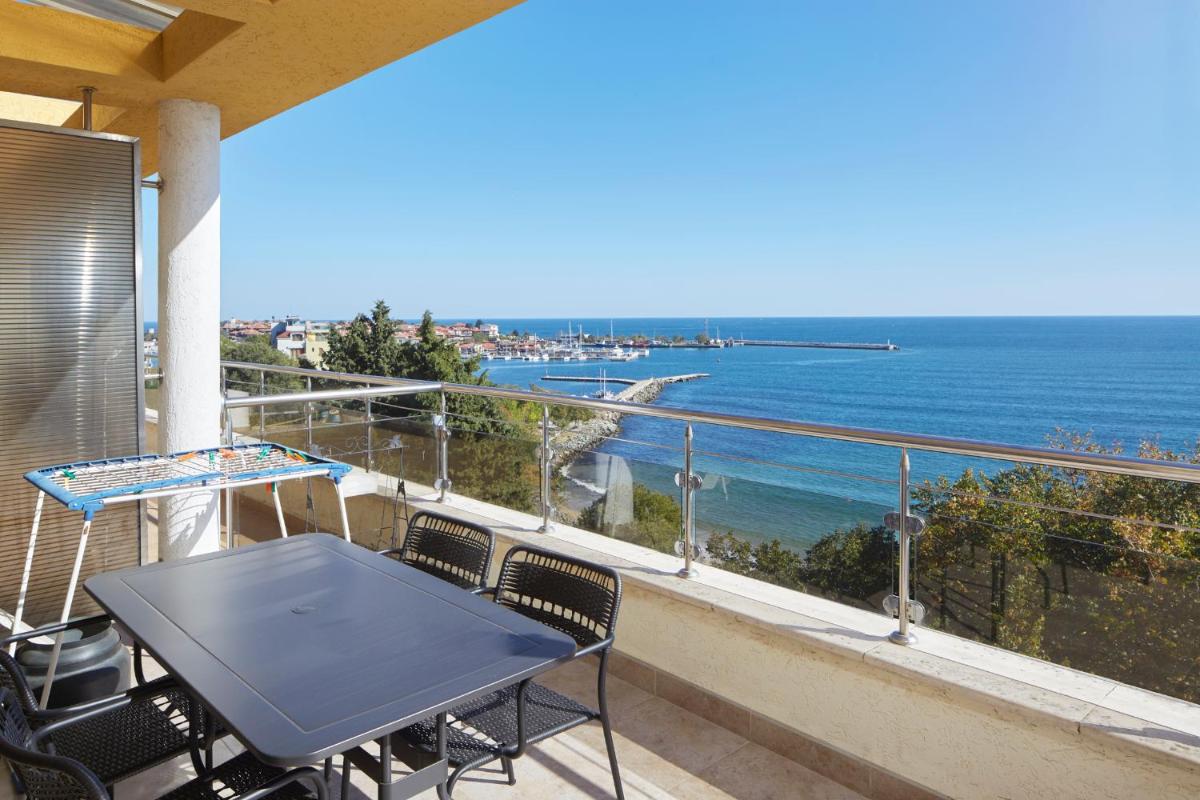 The Infinity Apartment Nessebar offers free Wi-Fi, free parking, beachfront access, family rooms, non-smoking rooms, full kitchen equipment, balcony, pet-friendly policy, private bathroom, view, shower, and air conditioning.