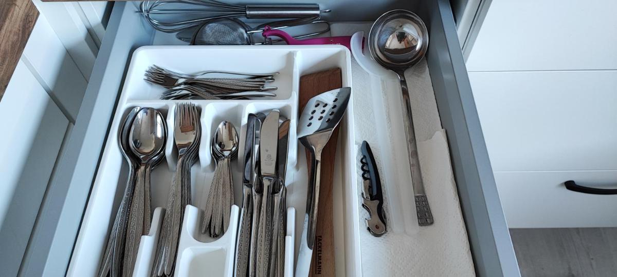 The large apartment accommodates a family comfortably.