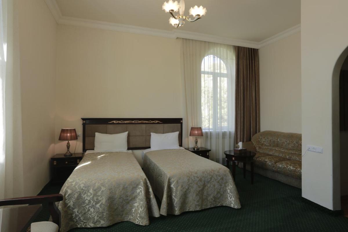 The Jermuk Olympia Sanatorium in Jermuk features a spa and wellness center offering various health-related treatments. Guests enjoy an on-site restaurant, beauty shop, and massage services. Free Wi-Fi is provided throughout the property. Rooms come equipped with a refrigerator, flat-screen TV with satellite channels, and a private bathroom. Other amenities include bicycle rentals, a games room, library, shared kitchen, bar, breakfast buffet, billiards, laundry services, meeting and banquet facilities, and airport shuttle service. Located near Jermuk Airport, approximately 2.5 miles away, this facility is highly-rated by couples, scoring 10.0 out of 10 for their exceptional location.