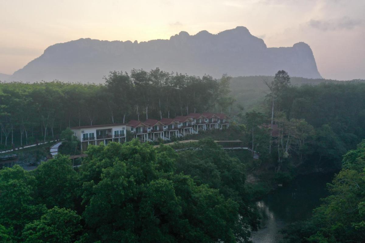 Khao Sok River Home Resort, nestled in scenic Khaosok, boasts accommodations featuring a restaurant, free private parking, a bar, and a lush garden. This charming 2-star resort offers air-conditioned rooms with complimentary Wi-Fi, private bathrooms, and room service. Guests can enjoy breathtaking views from their balconies overlooking both the river and mountains. Continental and à la carte breakfast options are available daily, ensuring an excellent start to the day. Conveniently located just 18 miles from Khaosok National Park, the resort provides easy access to nature lovers and adventure seekers alike. For couples, particularly those traveling as a duo, Khao Sok River Home Resort scores highly with a rating of 8.7 out of 10, highlighting its ideal location. Situated near Surat Thani Airport (approximately 49 miles away), the resort offers convenient amenities such as a paid airport shuttle service, making travel arrangements seamless.