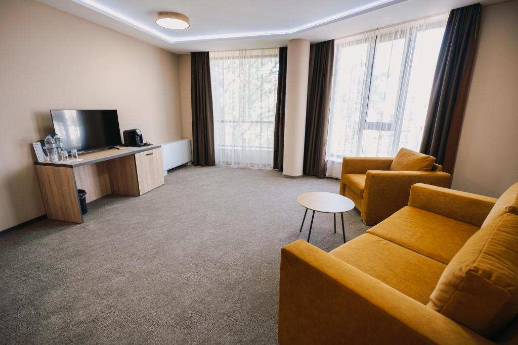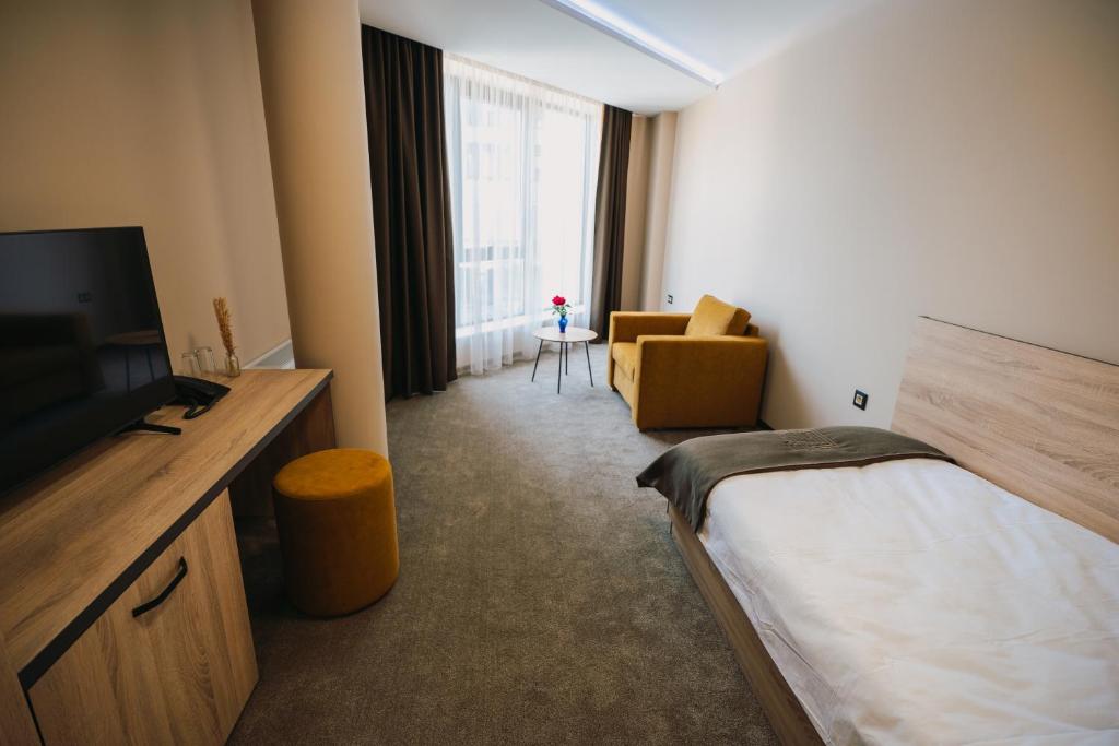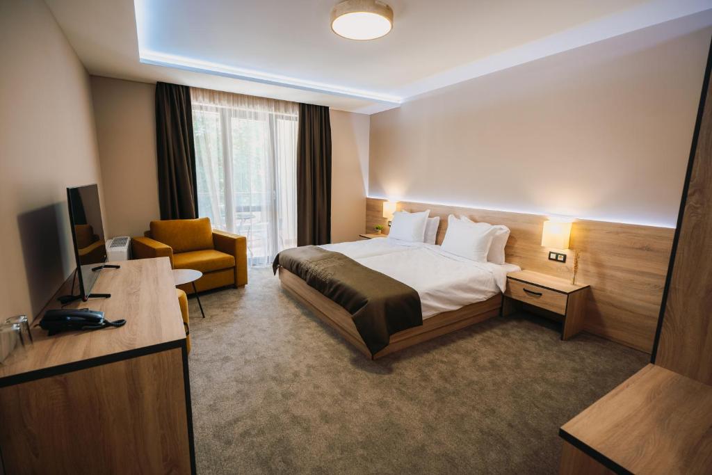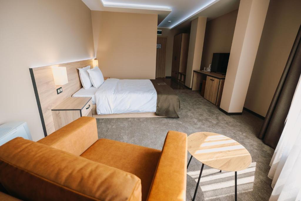 Located in Pleven, a convenient 10-minute stroll from the Regional Historical Museum - Pleven, Хотел Панорама offers comfortable accommodations featuring a lush garden, ample private parking, a shared lounge with a terrace, and an inviting bar. Each 4-star guestroom is elegantly appointed with air conditioning, free Wi-Fi access, and luxurious amenities such as private bathrooms. Rooms come complete with closets, desks, flat-screen TVs, balconies, and bed linens and towels. The hotel's attentive staff speaks Bulgarian, German, English, and Italian at the front desk. Conveniently situated near attractions like Mussems: Регионален исторически музей, Панорама "Плевнска Епопея", Художествена галерия Дарение Светлин Русев, Параклис-мавзолей "Свети Георги Победоносец", и Румънски мавзолей. Additionally, the hotel boasts facilities for non-smokers, family-friendly options, and a relaxing bar. Just 1.6 miles from the hotel lies Pleven Panorama, and visitors should note that Skobelev Park is approximately 1.8 miles away. Situated just under 96 miles from Sofia Airport, this location makes it easily accessible for travelers seeking a memorable stay in the heart of Pleven.