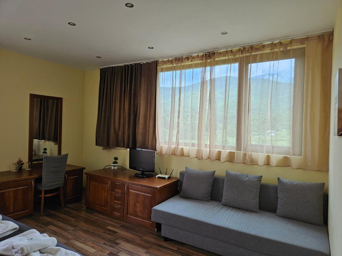 The Family Hotel Komhotel offers a delightful stay near Berkovitsa, featuring an inviting outdoor swimming pool, lush gardens, a spacious terrace, and a charming restaurant. Nestled among scenic landscapes, this three-star establishment provides comfortable air-conditioned rooms equipped with complimentary WiFi, private bathrooms, and amenities such as balconies and closets. Guests can enjoy convenient access to nearby attractions, including a playground perfect for children's fun.