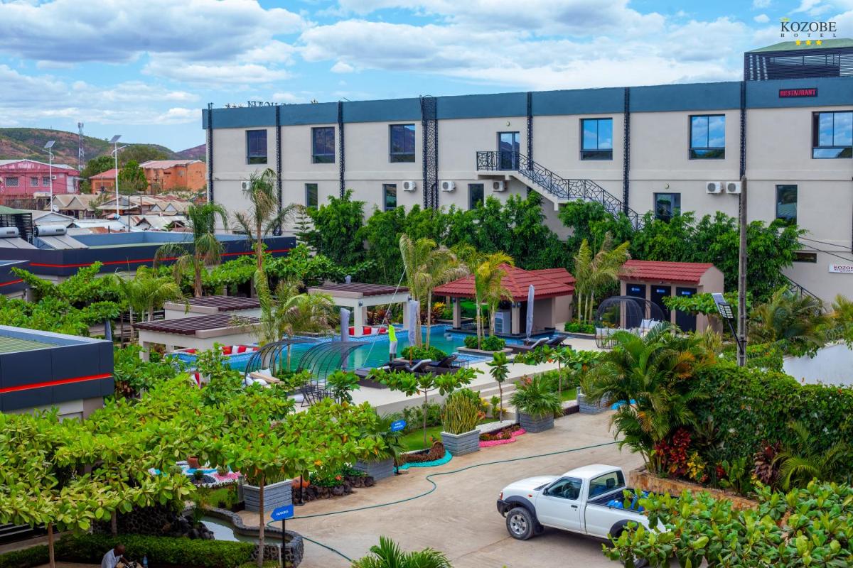 KozoBe Hotel, located in Ambilobe, just 20 miles from Ankarana Reserve, offers comfortable accommodation featuring an outdoor swimming pool, free private parking, a lush garden, and a shared lounge. Guests enjoy amenities such as a 24-hour front desk, free Wi-Fi, a complimentary airport shuttle, and a restaurant serving delicious meals. Each spacious room comes equipped with air conditioning, a seating area, flat-screen TVs with satellite channels, and private bathrooms with showers and free toiletries. Enjoy a refreshing dip in the pool, relax in comfort, and indulge in various dining options available at the hotel.
