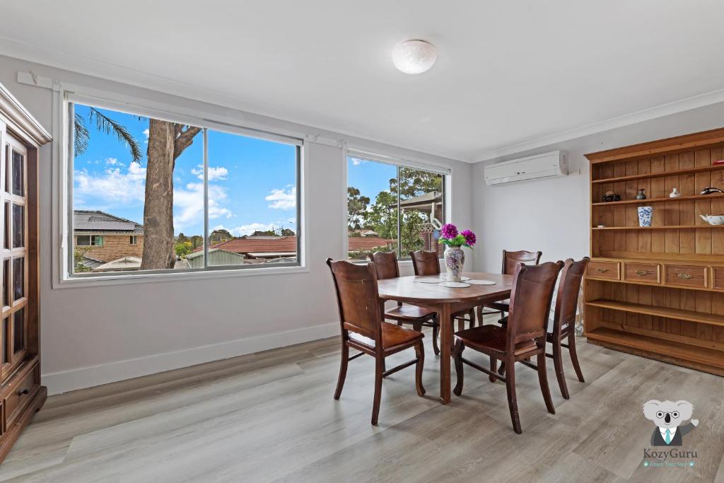 The spacious holiday home, KozyGuru by Blacktown, offers a comfortable stay with its three bedrooms and three bathrooms. Enjoy free Wi-Fi, air-conditioned comfort, and a well-equipped kitchen featuring appliances like a fridge, microwave, dishwasher, oven, and stove. Relax outdoors on the patio and in the serene garden. Situated 37 miles from Sydney's Kingsford Smith Airport, the property is conveniently near attractions such as CommBank Stadium (13 miles), Accor Stadium (20 miles), and Qudos Bank Arena (20 miles). Explore nearby museums at Old Government House (9.7 miles), Blacktown Arts Centre (1.9 miles), Fairfield City Museum and Gallery (8.6 miles), and Museums Discovery Centre (9.9 miles). This 120 m² home is non-smoking and perfect for families, offering all the essentials to make your stay memorable.