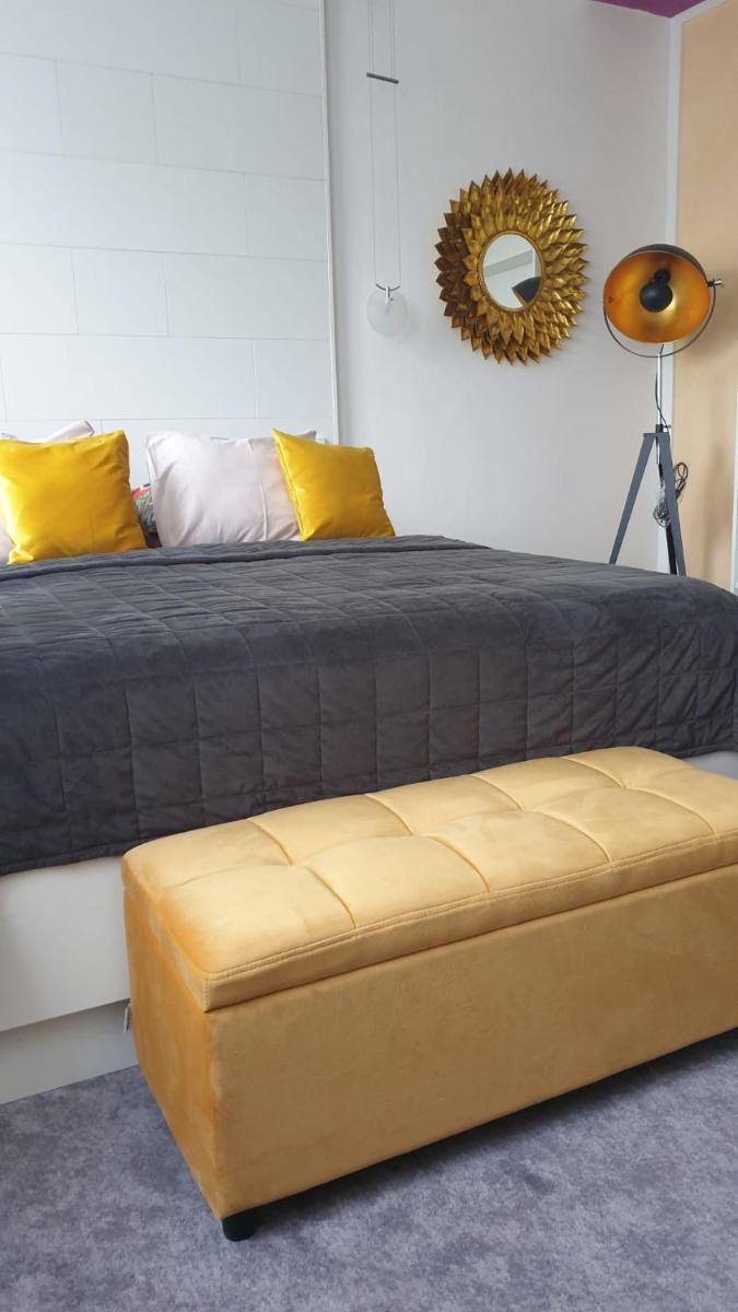 The apartment consists of a main room, a living room, a kitchen equipped with dishwasher and coffee maker, and a bathroom with shower and napkins. The towels and blankets are provided in the apartment. This apartment does not allow smoking and is acoustically controlled.