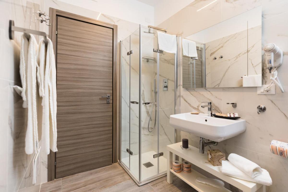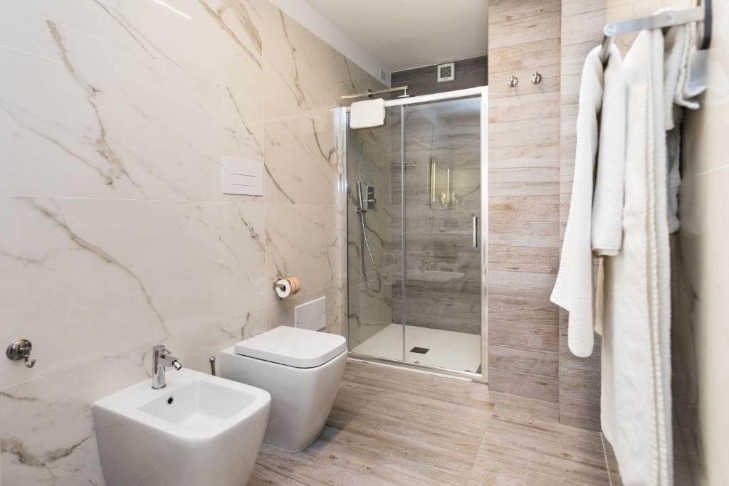 The accommodation boasts comfortable family rooms, each equipped with modern amenities such as air conditioning, a satellite flat-screen television, and free Wi-Fi access throughout the premises. For those who appreciate a touch of luxury, certain units offer private bathrooms with bidets and slippers, complemented by spacious terraces where one can enjoy their morning coffee.