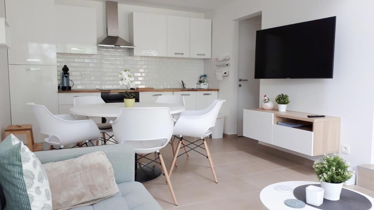 Equipped with modern amenities, each room at the apartment features a dedicated balcony, offering stunning views of the surrounding landscape. Guests have full control over their living space, thanks to the free Wi-Fi service, making it easy to stay connected throughout their stay. The fully equipped kitchen includes essential appliances such as an oven and microwave, ensuring guests can prepare delicious meals independently.