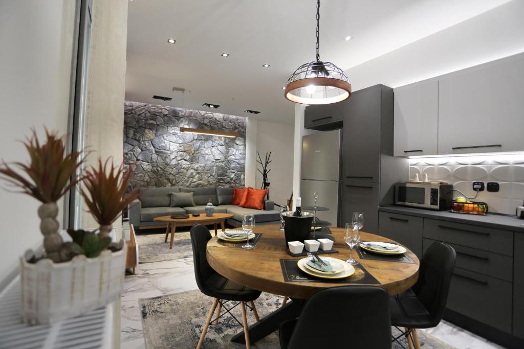 Larisa Luxury Apartments Kreousa, conveniently located near Larisa's Archaeological Museum and just one mile away from Alkazar, offers a luxurious stay featuring modern amenities and stunning mountain views. With its spacious two-bedroom apartment, guests will appreciate the private entrance leading them straight into their comfortable abode. Enjoy a peaceful retreat with the added benefits of a private balcony offering breathtaking vistas, a fully equipped kitchen, and a cozy living room complete with a satellite flat-screen TV. The property features Wi-Fi access throughout, making it easy for guests to connect during their stay. Non-smokers have everything they need with smoke-free rooms, and the entire apartment is yours to enjoy. The hotel provides complimentary airport transfers and offers a bike rental service for exploring nearby areas. Perfectly situated for those seeking relaxation and adventure, the apartments offer a range of recreational opportunities within a short distance.