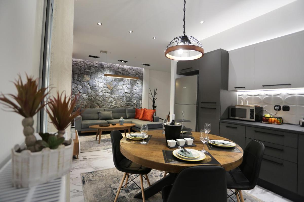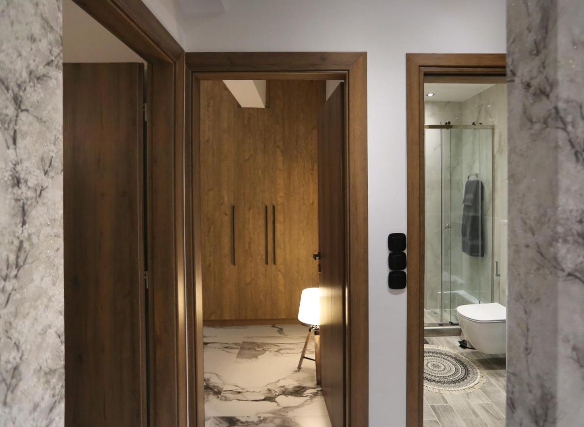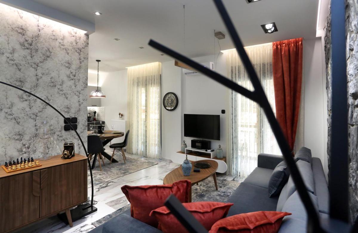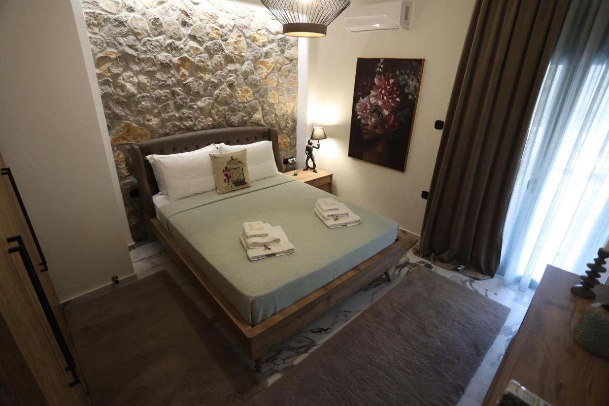 The Larisa Luxury Apartments Kreousa includes free WiFi, non-smoking rooms, family rooms, air conditioning, a bathtub, a shower, a microwave, a refrigerator, a coffee machine, a mini-bar, and a balcony.