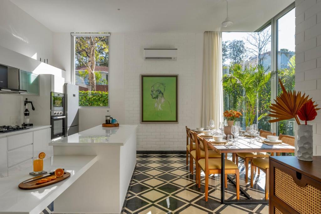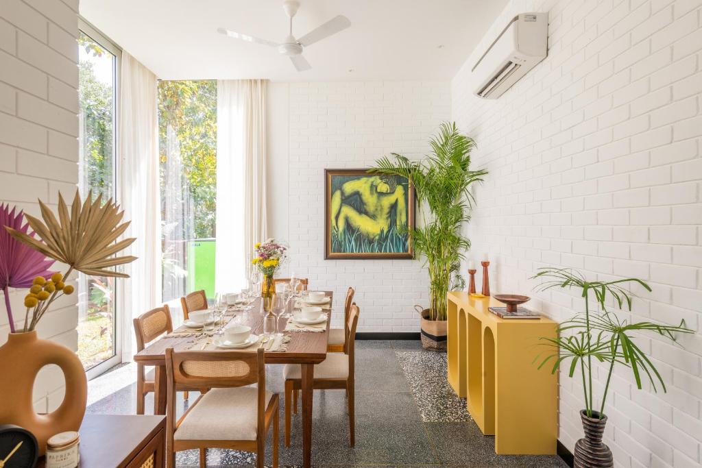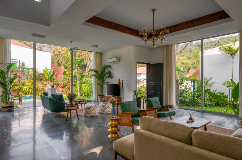 The Macedo Estate in Mapusa offers luxurious accommodation featuring an inviting outdoor swimming pool and verdant gardens. Guests enjoy access to a spacious balcony, free private parking, and complimentary Wi-Fi throughout their stay. Rooms boast a patio offering scenic views of the surrounding landscape, along with essential amenities such as air conditioning, a comfortable seating area equipped with a flat-screen TV displaying satellite channels, a fully-furnished kitchen, a dining area, and a safe deposit box. Additional perks include a private bathroom with a modern shower, a hairdryer, and complimentary toiletries. For those seeking comfort, the villa complex features bed linens and towels supplied upon request. Conveniently located within close proximity to Chapora Fort (5.1 miles), Thivim Railway Station (7.9 miles), and Dabolim Airport (26 miles), this property ensures guests can easily explore nearby attractions.