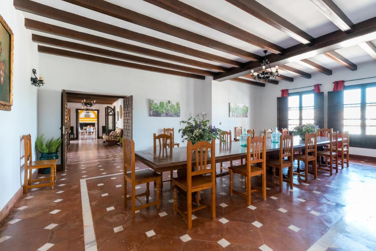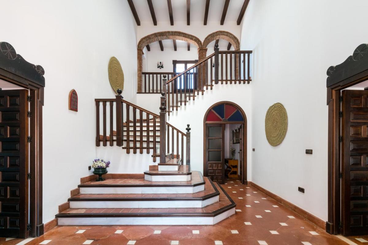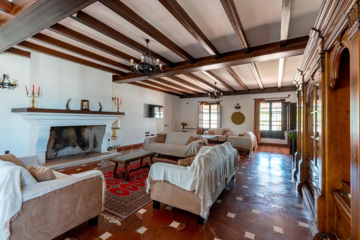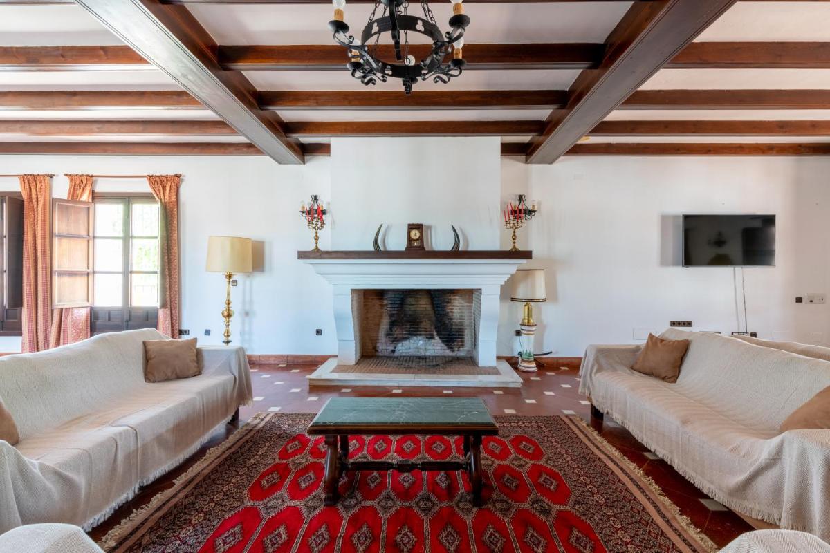 La Rejaquera, situated in Villanueva del Río y Minas, is an inviting holiday retreat, conveniently placed near Isla Mágica and Santa Justa Train Station. With its private pool, complimentary Wi-Fi, and secure parking, guests find comfort and convenience. Enjoy the benefits of a shared communal bathhouse and solarium, along with the option to relax in the indoor or outdoor pools. The villa boasts ten generously sized bedrooms, each equipped with modern amenities such as flat-screen TVs, well-stocked kitchens featuring appliances like dishwashers, microwaves, and fridges, plus six luxurious bathrooms offering both spa baths and complimentary toiletries. Relax by the fireplace in the living areas or unwind on the expansive balcony overlooking the serene landscape. During peak seasons, visitors may enjoy barbecues on their private patio while taking advantage of the surrounding trails. For those traveling, the nearest airport is Seville International Airport, approximately 31 miles away from La Rejaquera.