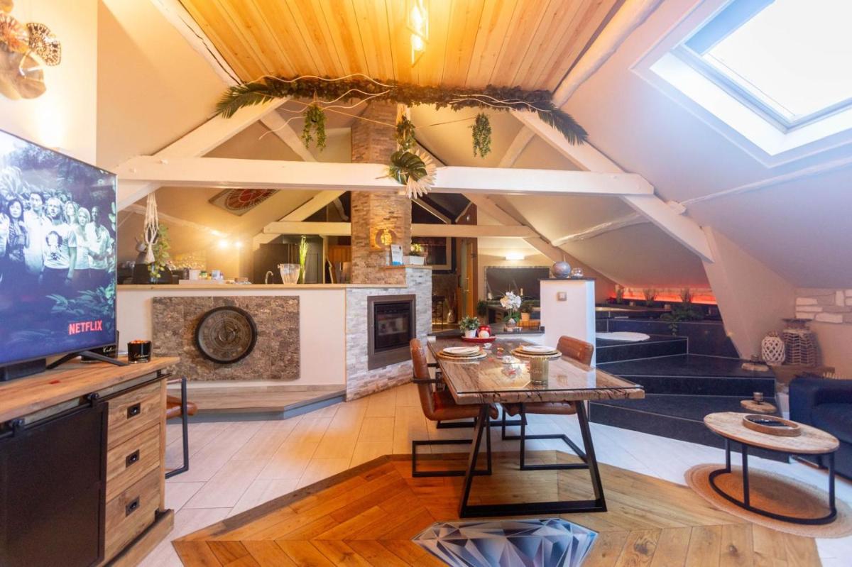 La Suite Diamant, located approximately 12 miles from Circuit Spa-Francorchamps in Theux, offers luxurious accommodation featuring a heated outdoor pool, complimentary Wi-Fi, free private parking, and direct access to a spacious balcony. Guests enjoy the comfort of a fully equipped kitchen with essential appliances such as an oven, microwave, and stove-top. The suite features a cozy seating area, a flat-screen TV, and additional amenities like a toaster, refrigerator, and coffee machine. For those seeking relaxation, the property boasts a sauna and a private bathroom with a walk-in shower. Free wine or champagne is also included. The surrounding area offers various attractions, including museums, historical sites, and cultural events. Close by, visitors can explore Plopsa Coo, which is just 17 miles away. Cycling enthusiasts will find numerous trails within easy reach, while nature lovers might want to visit Vaalsbroek Castle, situated 24 miles from the property. Conveniently located near Liege Airport, just 28 miles away, the hotel provides a paid airport shuttle service for added convenience.