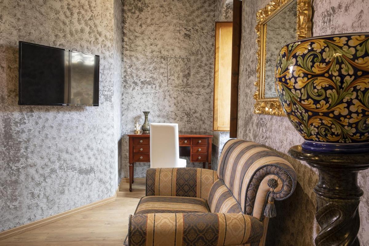La Togata Hotellerie de Charme - Relais il Pozzo in Montalcino, offering inner courtyard views, boasts a tranquil garden and a shared lounge. Situated approximately 25 miles from Mount Amiata, just under 17 miles from Bagno Vignoni, and within reach of Bagni San Filippo at 21 miles, this charming accommodation seamlessly blends modern amenities with picturesque surroundings. Guests enjoy access to a state-of-the-art fitness center, wireless internet coverage across the property, and the option to cook up a storm in the communal kitchen. Each spacious unit includes air conditioning, a comfortable seating area, a flat-screen TV equipped with streaming services, a fully-furnished kitchenette, a dining table, a safe, and a private bathroom featuring a bidet, robes, and slippers. Additional perks include a complimentary packed lunch for outings and travel excursions, ensuring comfort and relaxation during visits outside the premises. For those seeking exploration, guided walking tours are available in the local vicinity, while a bike rental service is conveniently arranged by the hotel. Conveniently located near Montepulciano Terme, just 30 miles away, this Bed & Breakfast promises an idyllic getaway with every amenity imaginable.