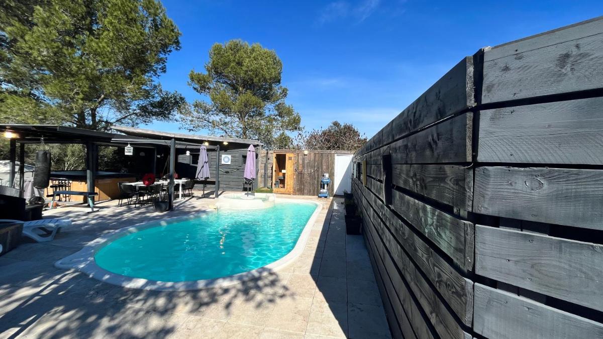 Located in Caveirac, approximately 17 miles from Parc Expo Nîmes and 26 miles from Arles Amphitheatre, La Yourte de Nîmes offers an extraordinary stay featuring a Jacuzzi Chalet Logement Insolite with stunning mountain views. This cozy retreat includes a terrace, outdoor swimming pool, and a fully-equipped kitchen. Enjoy free Wi-Fi, a hot tub, and a diverse range of amenities including a full-day security service. Relax in the garden or visit nearby attractions such as Musseums, bars, and spas. For those seeking adventure, explore local trails, cycling, and hiking opportunities.