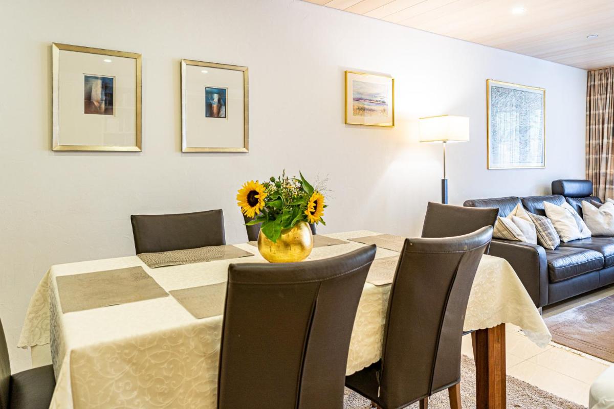 The Laax Rancho Family Apartment offers a comfortable retreat located just 8 minutes' walk from the bustling Freestyle Academy - Indoor Base. This family-friendly apartment boasts modern amenities, including a sun terrace, outdoor pool, and free Wi-Fi, making it perfect for both leisure and relaxation. Guests appreciate its well-equipped kitchen, featuring a dining area and flat-screen TV, as well as two bathrooms with a walk-in shower and bathtub.