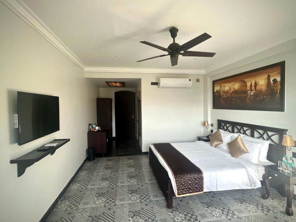 Lagoon Sarovar Premiere Resort - Pondicherry, situated approximately 6.5 miles from Sri Aurobindo Ashram, offers luxurious accommodations featuring a serene outdoor swimming pool, ample free parking, lush gardens, and a cozy shared lounge. Guests relish Chinese and Indian cuisine at the resort's dining facilities, enjoying a refreshing beverage at the nearby bar. Each room comes equipped with modern amenities such as a desk, electric tea pot, minibar, safe deposit box, flat-screen TV, and a private bathroom with a shower. Air conditioning ensures comfort during hot days, while spacious balconies offer scenic views.