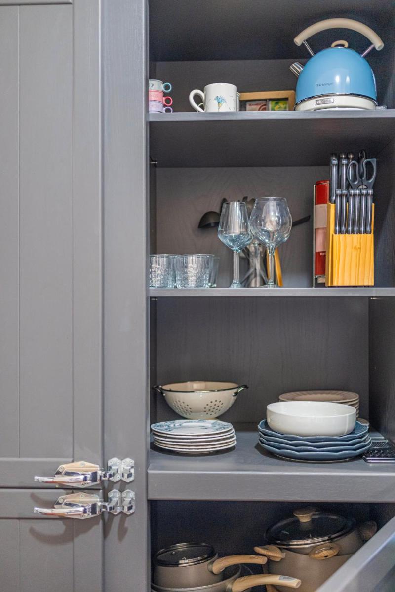 Yes, guests can enjoy their meals in the well-equipped kitchen, which includes a dishwasher, refrigerator, and stove-top appliances.