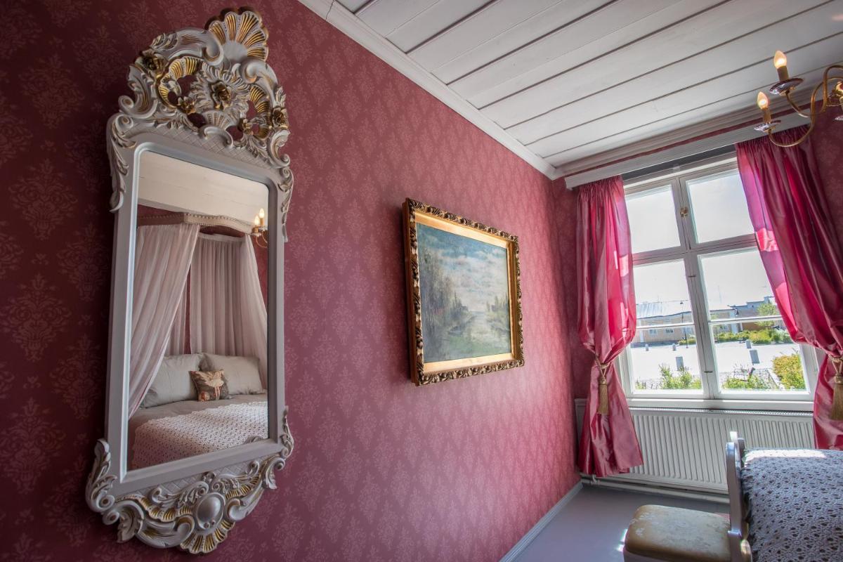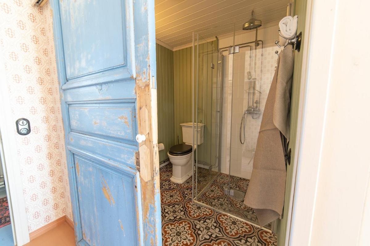 The charm of a 200-year-old Finnish home with a modern bath and a comfortable bed.