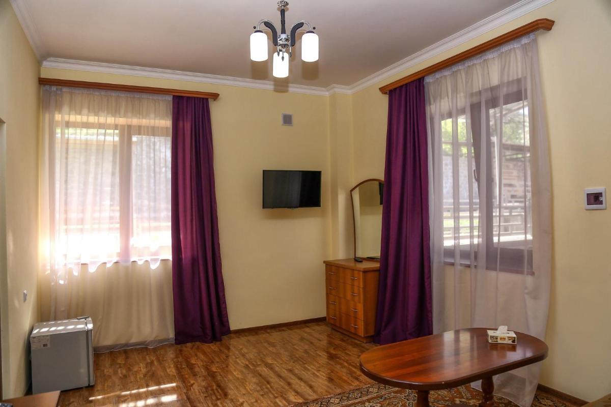 Lara Hotel offers a serene retreat nestled among lush gardens and tranquil terraces in Goris. This charming establishment boasts an inviting atmosphere enhanced by its richly furnished rooms and suites, each equipped with amenities designed to enhance comfort and relaxation. Guests can indulge in a variety of dining options, from traditional fare to international cuisine, thanks to the extensive menu available at the on-site restaurant and bar. The hotel's 24-hour front desk ensures seamless access to all services, while attentive staff members offer personalized assistance to meet guests' needs. For those seeking additional conveniences, Lara Hotel includes complimentary Wi-Fi coverage across the entire property, making connectivity effortless. Additionally, the concierge service, coupled with a tour desk, caters to travelers' interests and requirements, ensuring every visit is memorable and enriching. Should visitors require extra space, luggage storage facilities are conveniently located within easy reach. With its strategic location just 0. 9 miles away from Musée de la Préhistoire, Lara Hotel provides easy access to nearby attractions and cultural experiences, making it an ideal choice for both leisure and business travelers alike.
