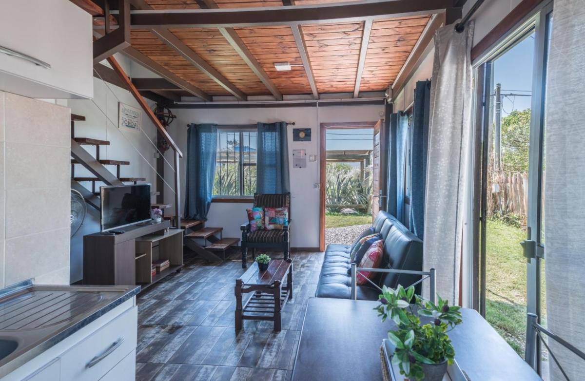 Elevated above the living room is a fully equipped kitchen, complete with an oven and a microwave, allowing for cooking up delicious meals right in the heart of the holiday home. Each unit features a private bathroom with a shower, ensuring comfort throughout the stay.