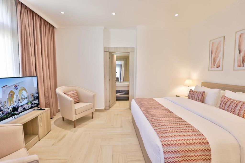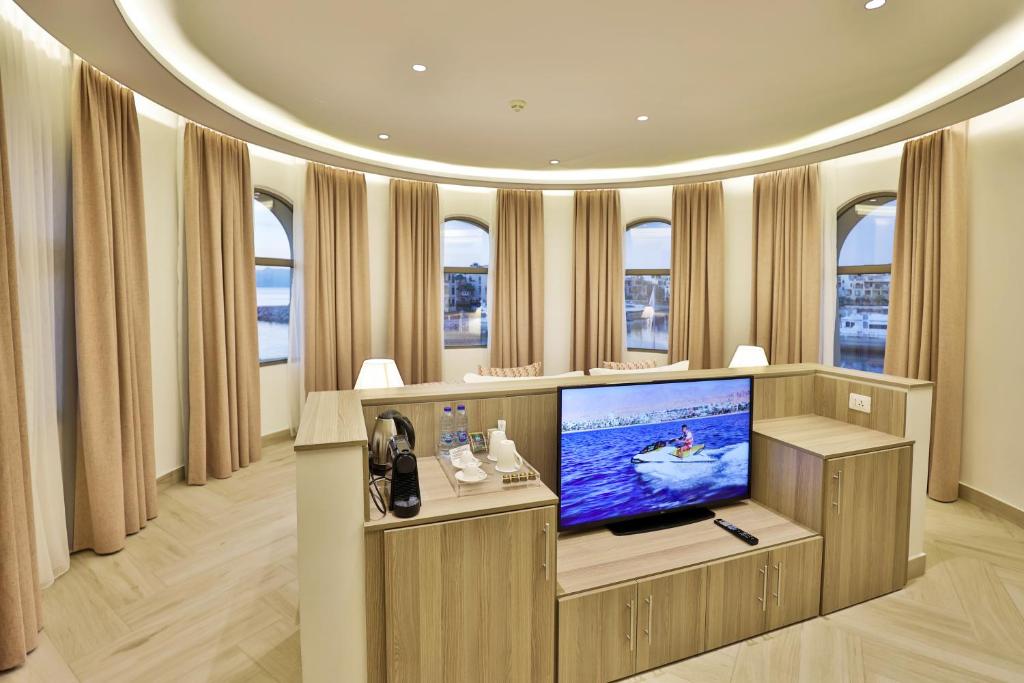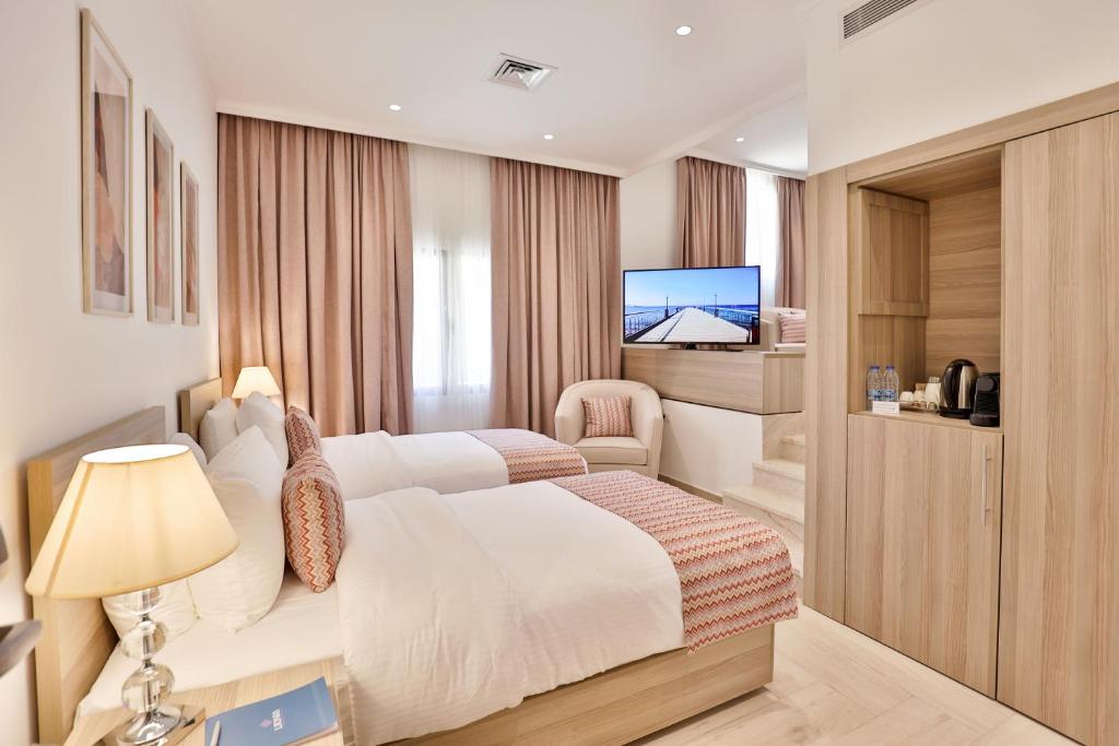 Lavanda Boutique Suites Tala Bay offers luxurious accommodations in Aqaba, featuring an outdoor swimming pool, free private parking, a garden, and a private beach area. With amenities such as a 24-hour front desk, an ATM, and free WiFi, guests can enjoy a comfortable stay. The resort includes a restaurant, non-smoking rooms, a tea/coffee maker in each room, and a full breakfast option. Located near popular attractions like King Hussein International Airport, Tala Bay Aqaba, and Aqaba South Beach, Lavanda Boutique Suites Tala Bay provides top-tier service and a welcoming atmosphere.