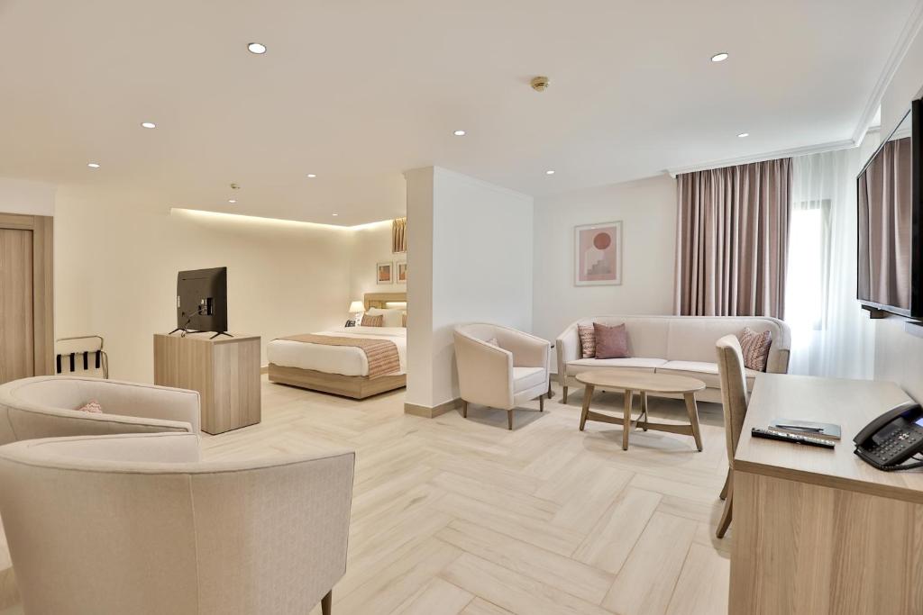 Lavanda Boutique Suites Tala Bay offers an outdoor swimming pool, free private parking, a garden, a private beach area, free Wi-Fi, a restaurant, non-smoking rooms, a tea/coffee maker in each room, and a full breakfast option.
